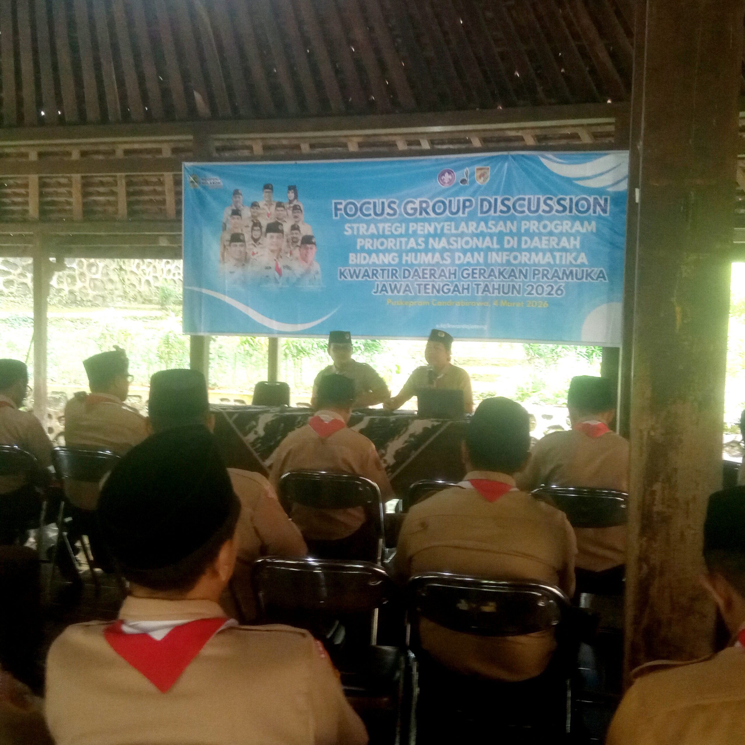 Semarang, Rabu 4 Maret 2026, 5 orang Andalan Cabang Kwarcab Brebes yakni Wakil Sekretaris Kwarcab yang sekaligus Kepala Sekretariat, kak Kasirun, S.Pd, Sekretaris Bidang Kerjasama, Aset, Sarpras dan Usaha, kak Lukman Suyanto, S.H, Andalan Cabang Urusan Kerjasama, Aset, Sarpras dan Usaha, kak Sartono, S.Pd, Andalan Cabang Urusan Organisasi dan Hukum, kak Tarjono dan Wakil Ketua Pusdatin, kak Ali Sadikin, S.Pd.SD mengikuti kegiatan Focus Group Discussion (FGD) dan Rapat Koordinasi Pusdatin yang diselenggarakan oleh Kwarda Jateng di Puskepram Karanggeneng.